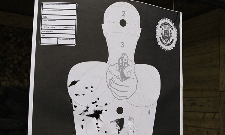 Em estandes de tiro, os Guardas Civis treinam técnicas específicas de tiro, garantindo que estejam aptos a lidar com situações reais com precisão e responsabilidade.